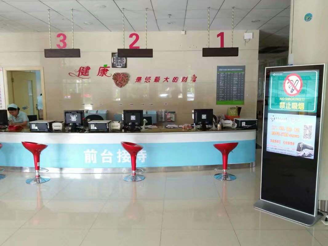 壁掛廣告機,放于電梯口通道,人工咨詢前臺,辦事等候區(qū),可以播放相關辦事指引流程,以及最新的疾病預防及治療。