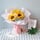 花 材3朵向日葵、9朵粉佳人玫瑰搭配桔梗、滿天星等配花搭配