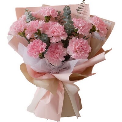 花 材11枝粉色康乃馨,尤加利葉間插精美