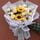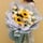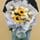 花 材香檳玫瑰11枝,向日葵2枝,桔梗,尤加利搭配