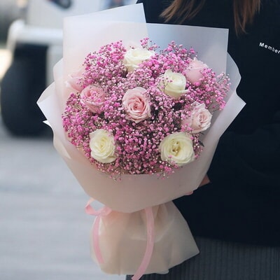 9朵玫瑰滿天星混搭花束