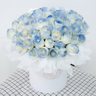 52枝碎冰藍(lán)玫瑰抱抱桶