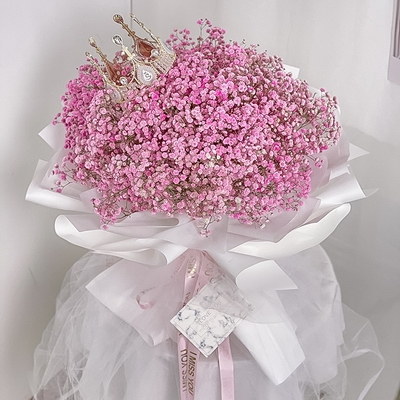 花 材2扎粉色滿天星、LED燈、1個皇冠