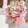 花 材19支粉色康乃馨,3支多頭白百合,白色滿天星、尤加利葉間插