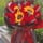 花 材10支紅玫瑰,9支紅康,3支向日葵,尤加利葉搭配