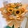 花 材3枝向日葵,3支香檳玫瑰,彩燈一條,橙色泡泡,尤加利