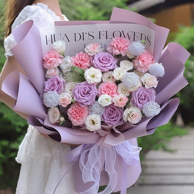 花材:玫瑰花 紫玫瑰 康乃馨 送祝福