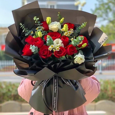 包 裝黑色珠光紙多層韓式包裝,同色系精美蝴蝶結束扎