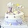 圓形鮮奶蛋糕,新鮮水果夾心,表層紫色小熊,愛心插件等裝飾
