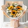內層蛋糕胚+新鮮奶油疊加,新鮮果肉夾層(水果有要求,請下單備注),表層時令水果、巧克力片擺成九宮格造型,黑色巧克力碎圍邊;9支香檳玫瑰,3支向日葵,白色洋桔梗、尤加利葉搭配