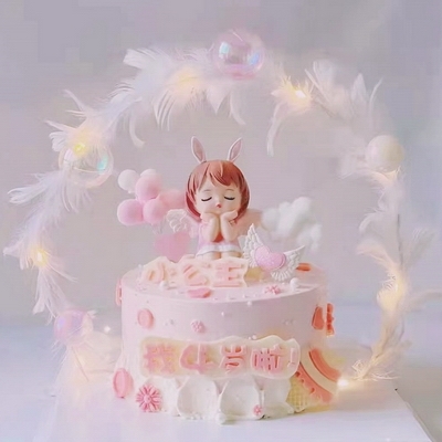 圓形鮮奶蛋糕,新鮮水果夾層,安妮寶貝、羽毛、彩燈等搭配